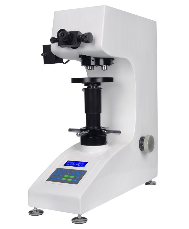 一体化铸铝机身,不变形,不位移,砝码加载结构,性能稳定,测量精度高,重复性好。硬度换算功能,采用LCD显示屏,操作简便,高清光学系统,光源亮度可以20级调节,用测微目镜测得对角线长度D1和D2值,按键输入后可在LCD上显示硬度值,定位准确。