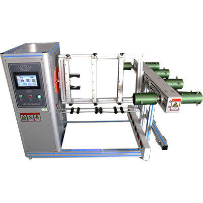GX-9902-6家电电源线折曲试验机适合于箱体类、手持类样品的器具,如家电器(插接器、鼠标、剃须刀、吹风机、吸尘器等)。固定于本机转动板上,使电源线出口处对准转动板中心,垂直接下电源线,并吊挂荷重,设定折曲速度、左右角度及次数后,启动转动板,开始弯折电源线,自动停机后检视被覆受损程度及导体断线率。本机符合GB4706.1、IEC60335试验标准